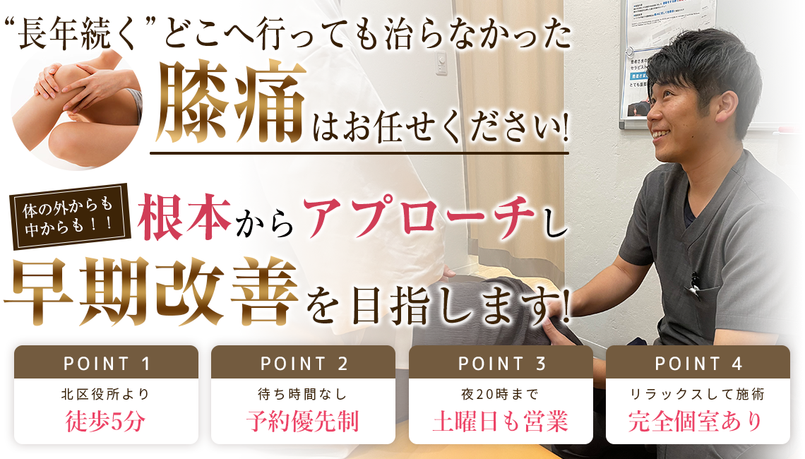 東京都北区王子で膝痛の根本改善を目指すなら「よのひ鍼灸院・整骨院」