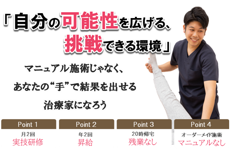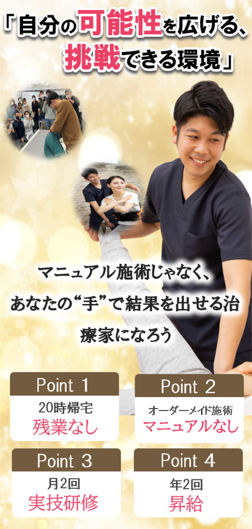 | 募集職種 | 柔道整復師・鍼灸師・整体師 |